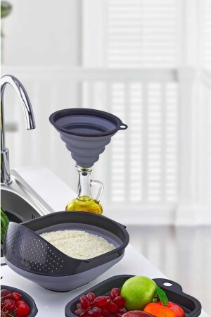 MNZ-4- Piece Folding Strainer Set 4 Piece Kitchen Set Accordion Rice Strainer Funnel Badya Dowry Set