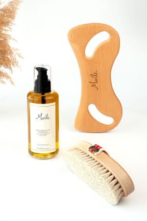 فرشاة شعر الحصان الطبيعية من MNZ-Mar'le + زيت تدليك مضاد للخلايا 200 ML + أداة إزالة السيلوليت للدليك الخشبية 3-