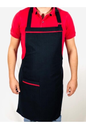 MNZ-Cross Strap Kitchen Apron كبير الطباخين المقاهي مطعم الطباخين الطباخين صاغر الشعر باريستا Apron - الأسود