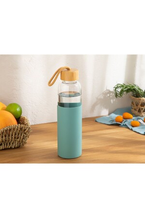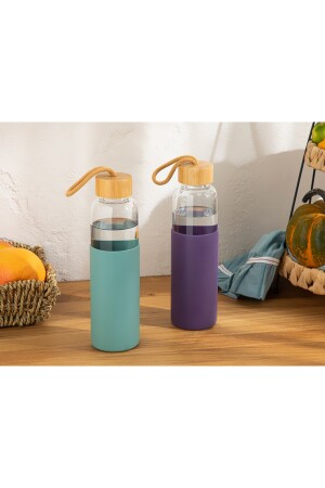 قنينة زجاجية من سليكون MNZ-1 و1 غطاء من الخيزران. مناسبة لأغراض العرض والخدمة على طاولةك النميقة والكل اليومي. ي