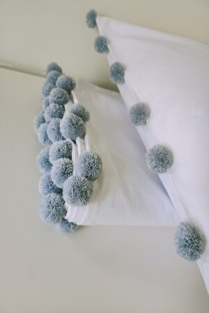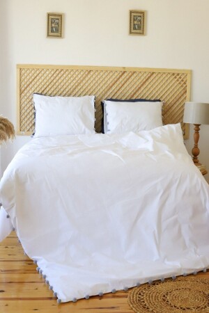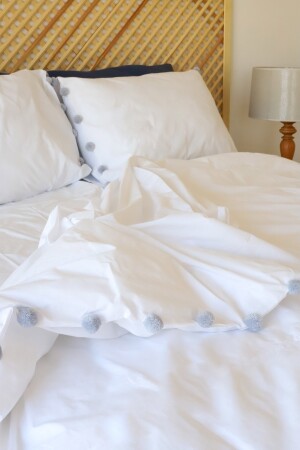 فندق من سلسلة من الفندق البومبوم الرمادي 100% القطن الفاخرة مزدوجة الأبيض غطاء غطاء مجموعة pnpngr1122