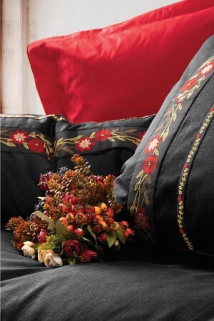 فن MNZ-Folk Art غطاء غطاء مزدوج مجموعة فلوري سوداء nd_8680108055410