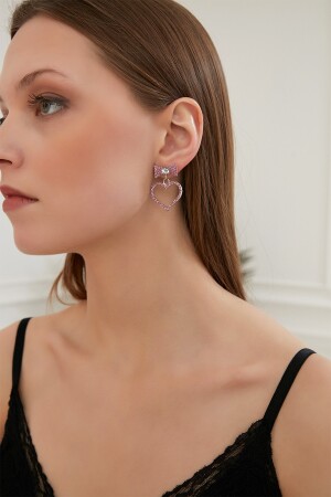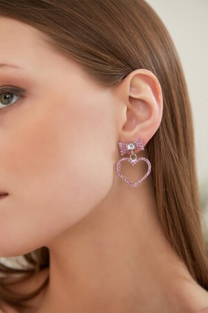 فومنز-النساء الوردي قوس ربطة القلب نموذج كريستال زيركون حجر يومي الأقراط النموذج فستان العطاء عيد الحب