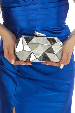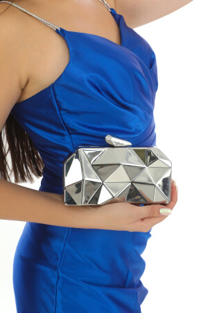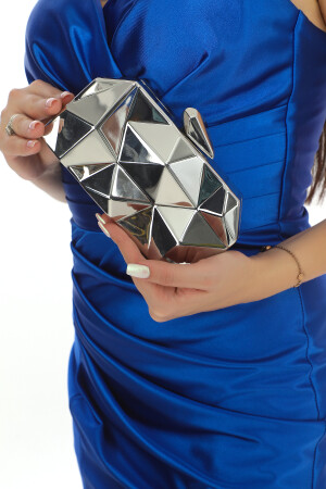 Kadın Yuvarlak Gümüş Taşlı Bilezik Aksesuarlı Abiye Clutch Portföy Çantası