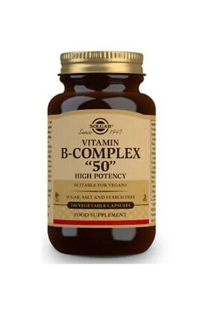 فيتامين B مشترك من MNZ-Solgar 50 مگ 100 كبسولات يساهم في تقليل التعب والإرهاق وتوليد الطاقة. نظرًا لأن أحد الخصائص