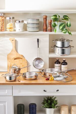 Bio Granit 7 Prç Istiridye Fildişi & Gold Kulp Tencere Ve Tava Seti EVTGR7PRÇEZMFİLDİŞİ