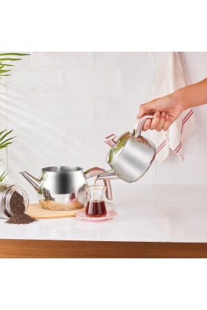 MNZ-Karaca Belinay Midi Rose Teapot Set مع محتوى قاعدة الاندفاع حجم: 1-1.6 LT حجم: 13x10-15x12 سم مواد: ميزات الفولاذ المقاوم