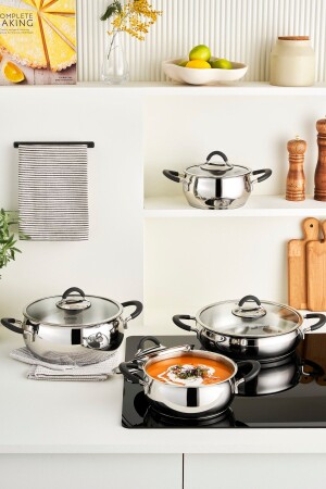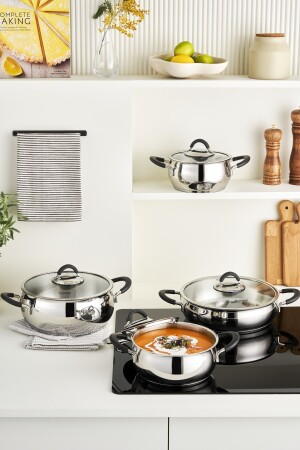أوزير مانز-كاراكا 8 قطع حديد المطبخ مع قاعدة الاندفاع ومقبض السيليكون السوداء محتويات 16 سم بروت 1.5 لتر 18 سم بروت عميق