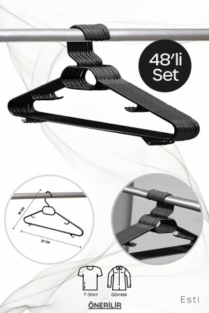 MNZ-48 ثياب بلاستيكية سوداء اقتصادية معلقة 1 قطعة 48 معلقة سيتم إرسالها لطلبك قمصان- قميص- سترة إلخ. مناسبة لمل