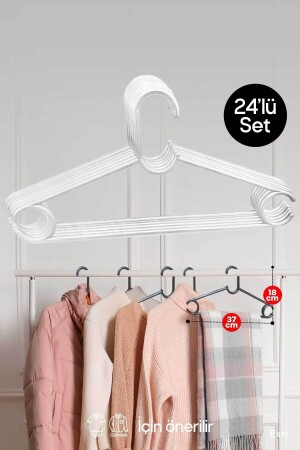 MNZ-24 قطع - ملابس بلاستيكية بيضاء معلقة أبعاد المنتج: 37 × 18 سم مناسبة للملابس مثل القمصان، القمصان، القميصات، الفستان