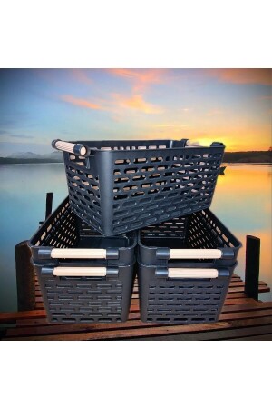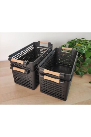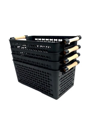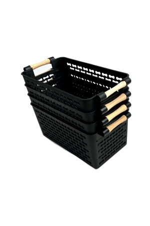 MNZ-4 Pieces - سلة منظمة تزيينية مع مسدس خشبي. الأبعاد: 27x15x12 سم لون: أزياء سوداء والنظام سيأتي إلى منز