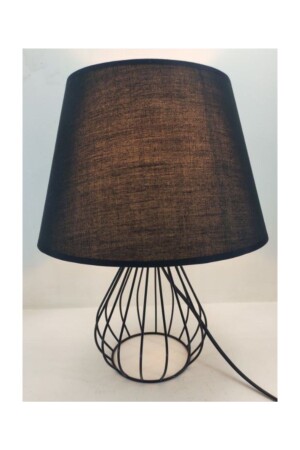 مصباح طاولة للكفالة المعدنية الصلبة من الحديد المصبوبة بضوء أساسي مع رأس من الأقمشة السوداء. مثالية للغرف النوم والم