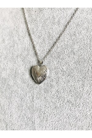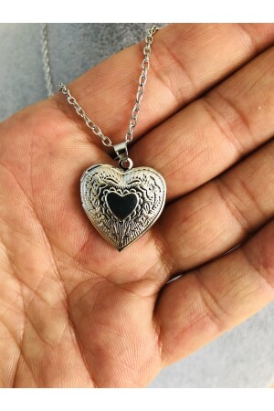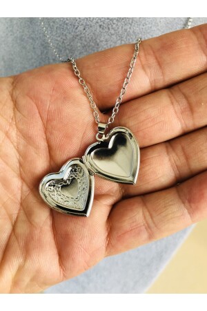 قلادة قلبية ذات نمط في اللون الفضي للنساء من MNZ مع كأس و صورة قابل للفك