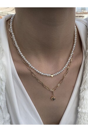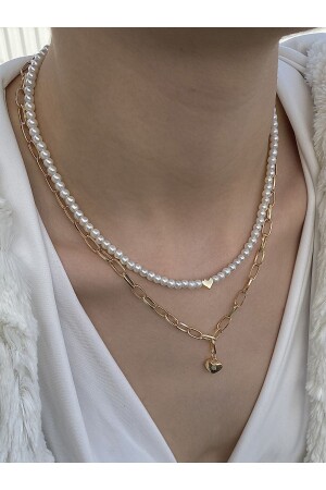 قلادة قلب اللؤلؤ من سلسلة ذهبية مزيجة MNZ