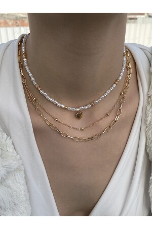 قلادة مزيجية من 3 قطع من الذهب للنساء