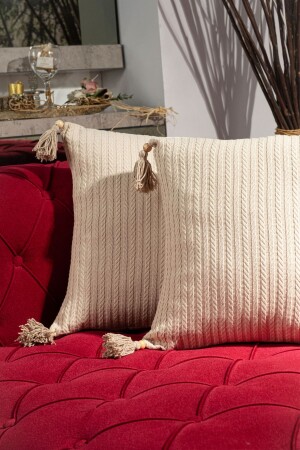 MNZ-2 Piece Authentic Knitted Pattern Soft Throw Pillow Cover - المنتج فارغ. فقط كغطاء وسادة - 2 قطع سوف يتم إرسالها. إنها طبيعية تمامً