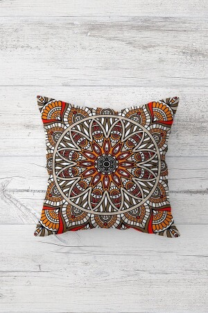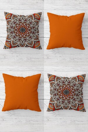 قزمة غطاء الأريكة المخبأة بالزرع النمطي (MNZ-Ethnic Patterned Orange Hidden Zipper Cushion Cover Sofa Pillow Case Set) مجموعة غ