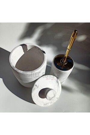 قمامة القمامة المعدنية المعدنية من الرخام (MNZ-Marble Patterned Matte Bathroom Trash Can) وفرشاة المرحاض (TW10102)