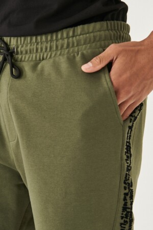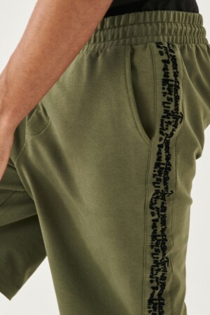 Erkek Siyah Superior Baskılı Bel Paça Şeritli Şort