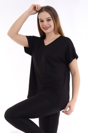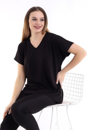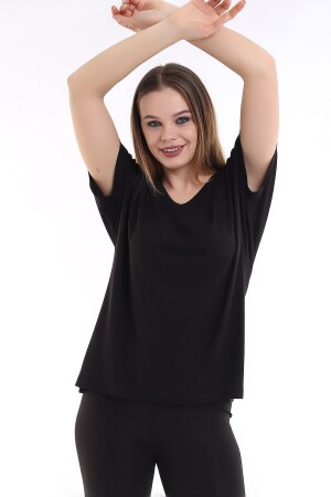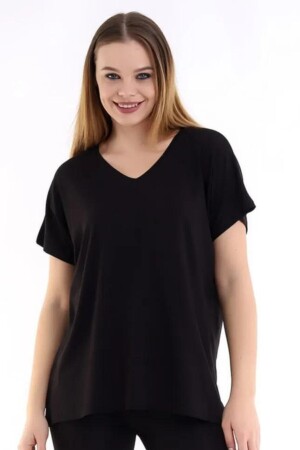 Kadın Büyük Beden Siyah V Yakalı Viskon Bluz 65n22538