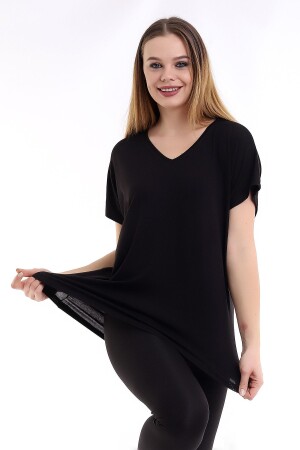 Büyük Beden Yeni Sezon Kolları Pullu Konfor Modeli Kısa Kollu V Yaka Şık Penye Tunik T-Shirt