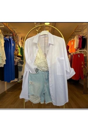 Kadın Beyaz Cepli Oversize Uzun Basic Poplin Gömlek
