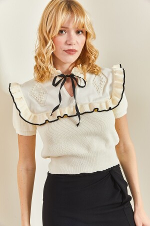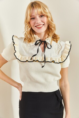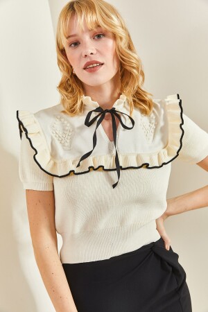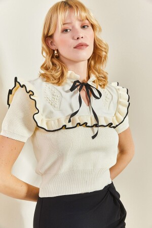 Kadın Siyah Bisiklet Yaka Kolları Fırfırlı Fisto Bluz ALC-X10013