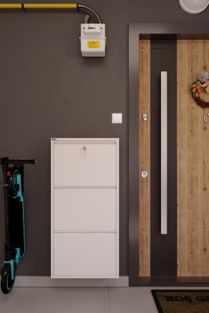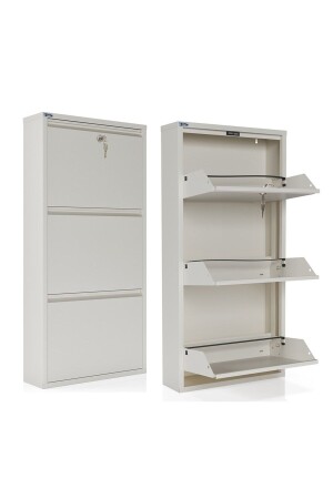 كابينة حذاء معدنية ثلاث قطعة قابلة لتحديد مكان (MNZ) - بيضاء