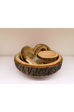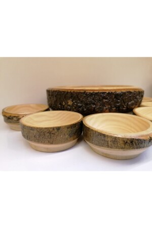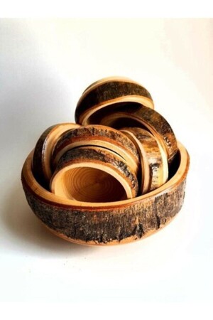مـنز-طبيعي الكوكي الخشبية يضم سبعة قطع: 6 كؤوس صغيرة و 1 كؤوس كبيرة. كؤوس صغيرة 8-10 سم قطر الكؤوس الكبير هو بين