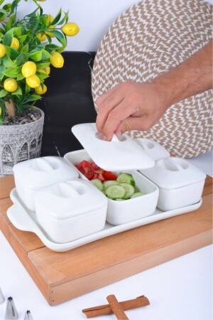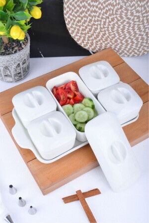 6 Bölmeli Kare Kapaklı Tepsili Lüks Kahvaltılık Modern Sunum Seti Ve Saklama Kabı TYC00811401678