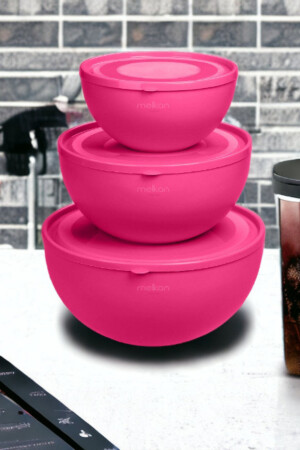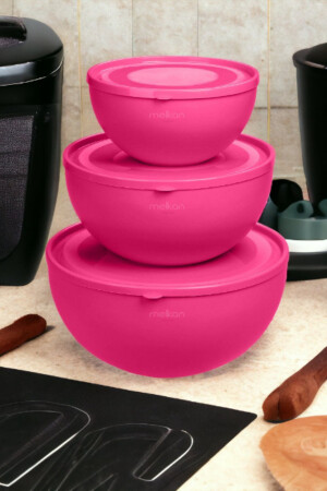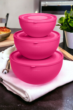 مجموعة من 3 أكواب دائرية مع لود الألف الوردي الظل: التناغم المثالي للطازجة والنظام طعامك ، الذي لا بد منه للحياة اليومية ، سوف يستمر الآن