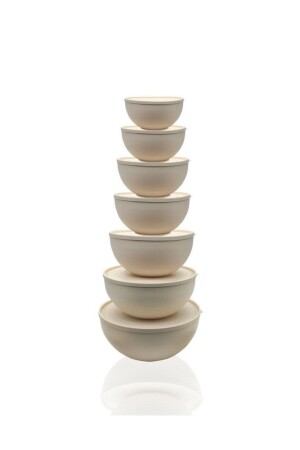 Krem Yuvarlak Kapaklı Kase 7'li K2014