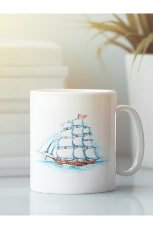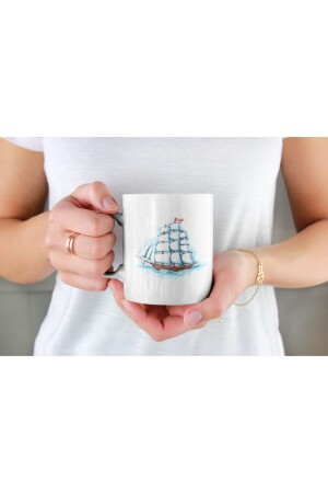 كأس MNZ-White Troophy زجاجي بحر مرسومة زرقاء قارب القارب ARC137