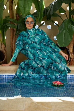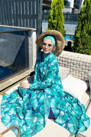 كافتان من طراز MNZ واحد "باريو" أوراق خضراء على ملابس حمام الحجاب