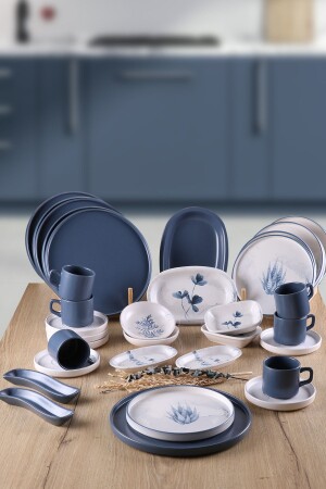 Çiğdem Blue Model 12 Kişilik 21 Parça Kahvaltı Takımı Kahvaltı Seti[ Mavi 12]