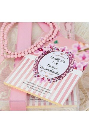 كتاب الوهبة من ياسين - سجادة الصلاة - مجموعة هدية ميفليد مع كلمات الصلاة العطرية - وردي 70 × 120