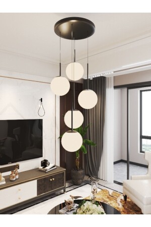 كرة مصباح MNZ-معلقة شمعة البيضاء 5 قطع كوكب الزجاج الأسود القياس الدائمة الحديثة التصميم الموضعي المصباح 5-تراية