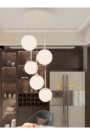 كرة مصباح MNZ-معلقة شمعة الكتل البيضاء 5-قطع الزجاج، القضية البيضاء الدائمة الحديثة المصباح التصميم المرن 5-ترا