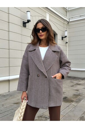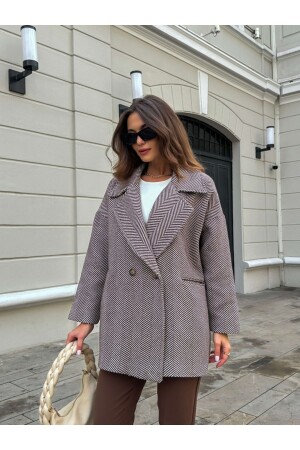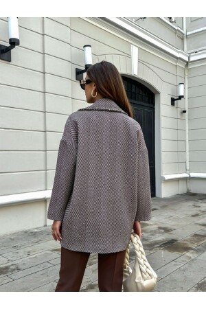 Gri Balık Sırtı Oversize Kaşe Kaban