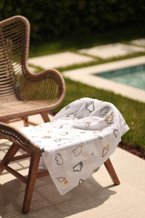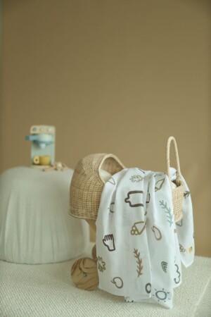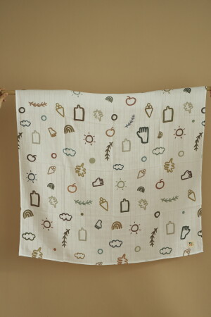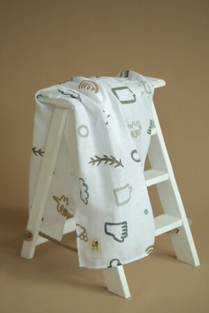 غطاء المسلين MNZ-120x100 سم. مصنوع من نسيج أبيض من القطن العضوي 100٪. ملون باستخدام ملونات GOTS (Organic) المعتمدة