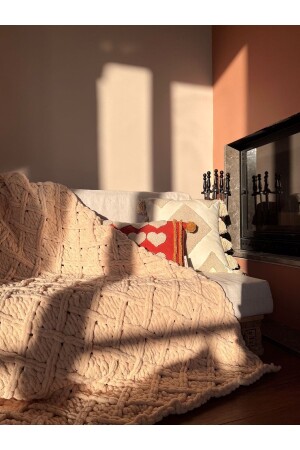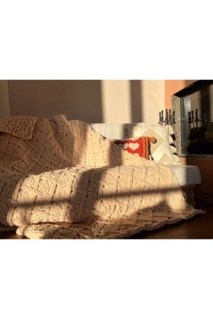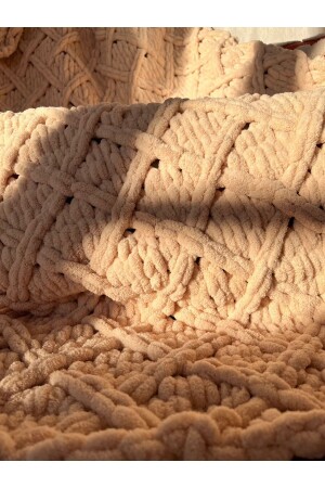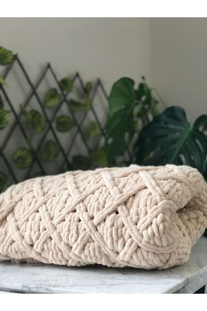 غطاء من الصوف المنسق باليد من قِطاع ميس وربل كريم نمط الماس 90 × 165 سم كريم ملابس من الصوف المنسق باليد من قِطاع
