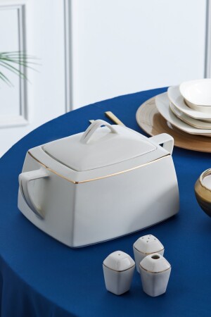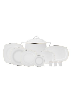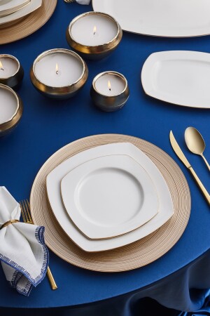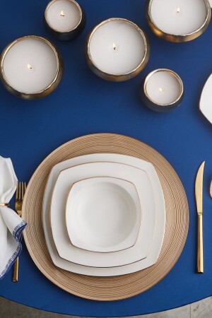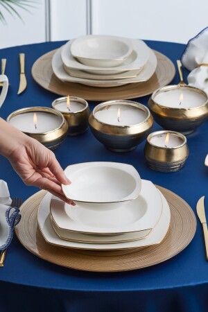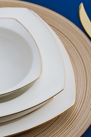 كريم كيراكا من المملكة المتحدة 60 قطعة من البورتسلين نصف مربع طعام عشاء ذهبية مجموعة لـ 12 شخصية مجموعة تضم 12 طبقات خدمة (24 سم) 12 طبق