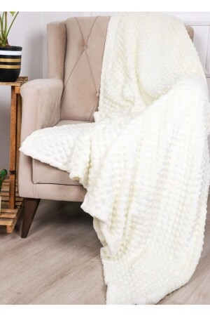 Krem Çift Kişilik Fransız Güpürlü Çeyizlik Battaniye Takımı