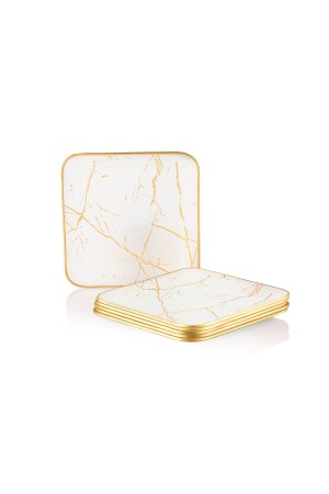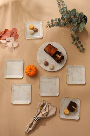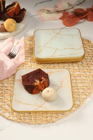 6' lı Cam Kek Pasta Tabağı Seti - Yaldızlı Lüks Pasta Takımı(16CM)