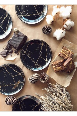 طاولة كعكة نمط من الرخام 6 قطع *المنتج زجاجي *لا ينصح بغسل الآلة