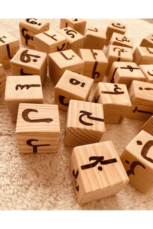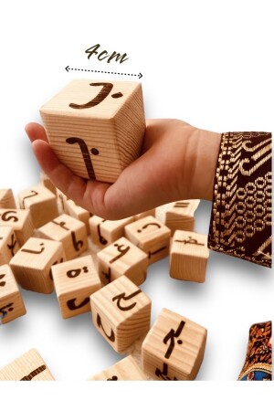 تم استخدام جميع الحروف العربية في 30 مكعب. هناك 28 بطاقة حروف مرسومة وتُرسل في كيس. تبلغ أبعاد الكوب 4x4 سم. يتم إعد