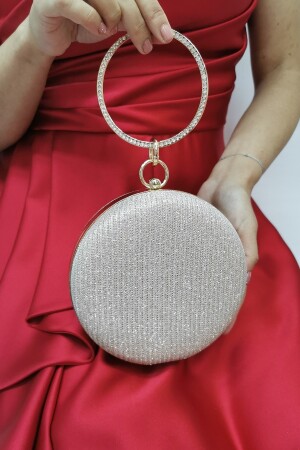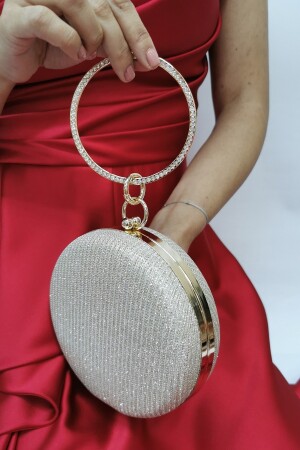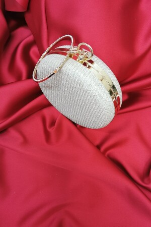 Kadın Yuvarlak Gümüş Taşlı Bilezik Aksesuarlı Abiye Clutch Portföy Çantası