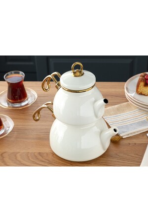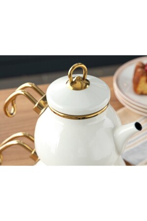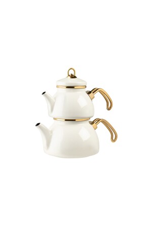 Nv10055 Porselen Demlikli Beyaz Emaye Çaydanlık Takımı