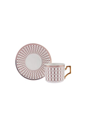 MNZ-Karaca مجموعة كوب شاي حلقة حمراء لطيفة لشخصين مجموعة تتضمن كوبات شاي 2 ملينترات 2 لوحة شاي مواد: البورتسلين. مناسبة لغسل