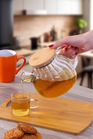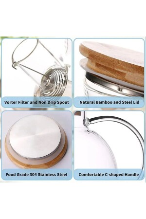 كوب شاي من قطعة زجاجية من بوروسيليكات MNZ مع غطاء من البامبو 1 ليت
